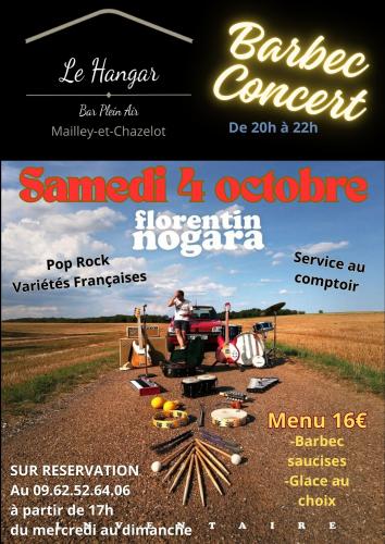| Le 04/10/2025 à Mailley et Chazelot Barbec Concert Florentin Nogara en concert au bar Le Hangar. Soirée Barbecue : saucisse, glace au choix Tarif : 16€ Samedi 4 octobre à partir de 20h, bar ouvert à partir de 17h Lieu : Bar Le Hangar, 19b rue de la fontaine à MAILLEY-ET-CHAZELOT Réservations au 09 62 52 64 06 Email : lecamamag@outlook.fr |