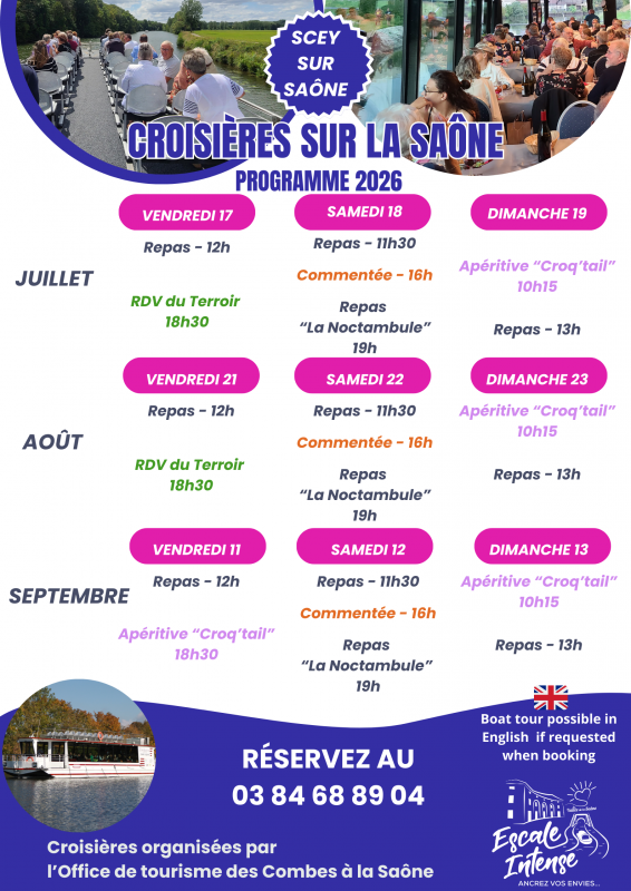 Croisières repas, croisières commentées, apéritives, RDV du Terroir…